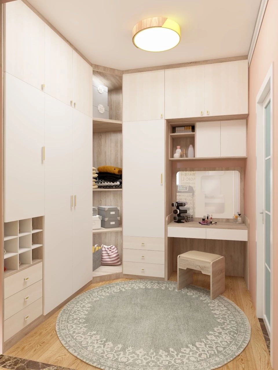 ▲L型衣柜+梳妆台一体化设计,不仅有效利用空间,还能让空间更具整体性。