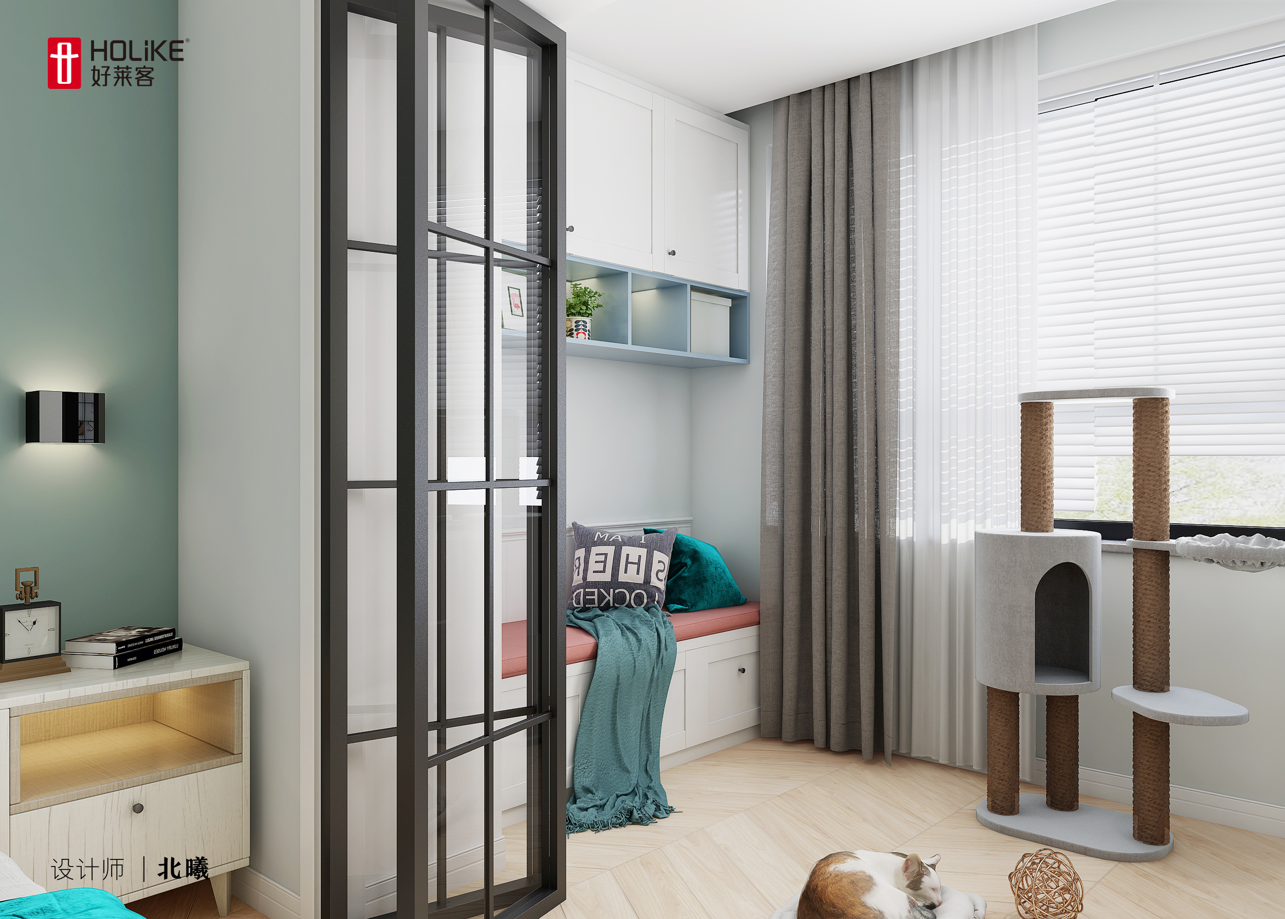 主卧打通阳台 打造图书角和猫咪乐园